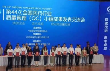 南京華蓋制藥發(fā)自肺腑QC小組獲評第44屆全國醫(yī)藥行業(yè)質(zhì)量管理QC小組活動一等成果